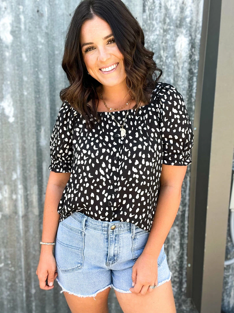 Doe & Rae The Leopard Square Neck Top Small