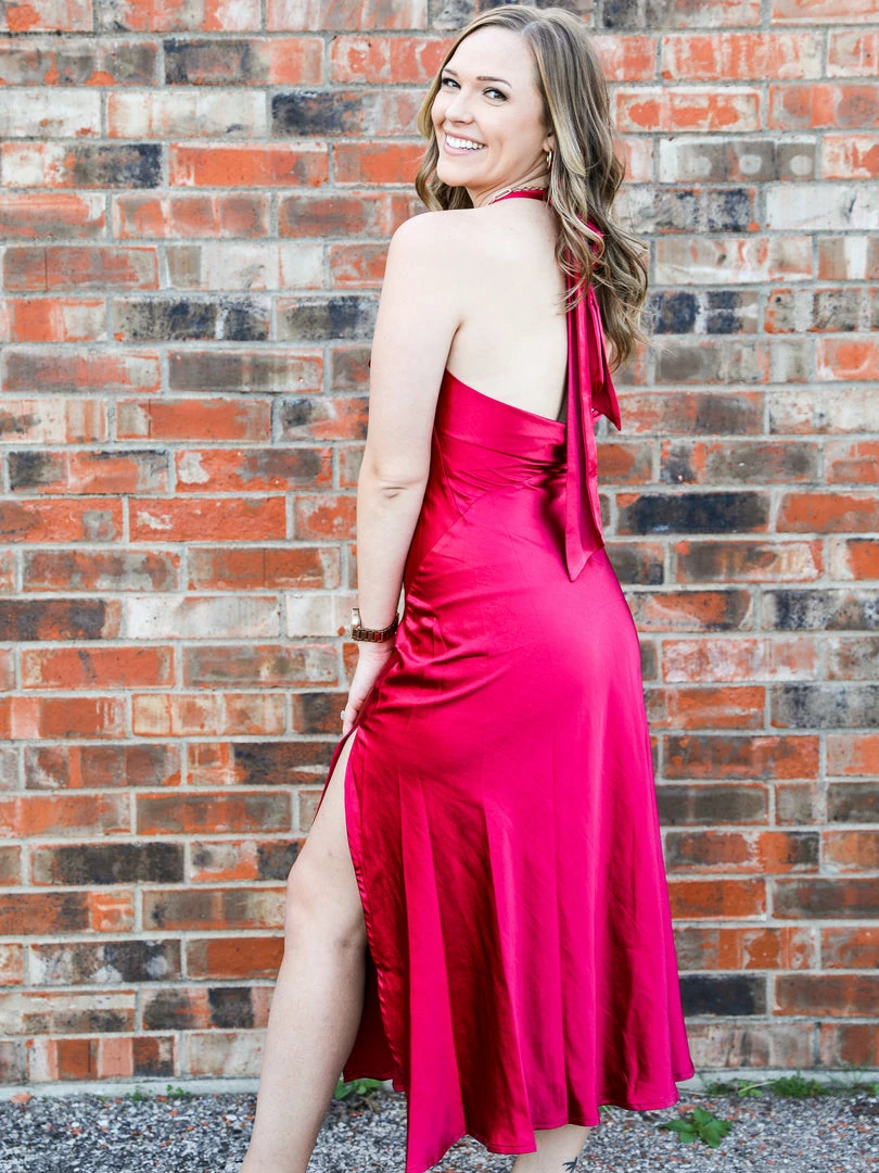 Peach Love California The Satin Halter Dress Medium
